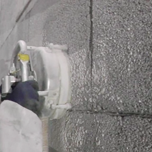 超高圧(1000~2000㎏/㎠)の水圧を利用して表面塗膜・下地材の撤去をを行います。 施工後の躯体面はバウムクーヘンのような模様がつき完全除去を可能とします。 出隅入隅処理に対しても専用器具を使用します。施工能力は100㎡/日を可能とし、工期短縮を実現します。